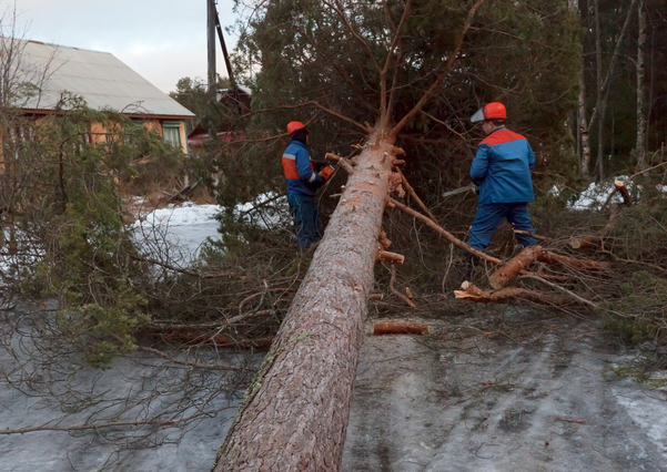 Debris is usually cut into manageable sections and removed or stacked neatly. Cleanup is part of the safety-focused process.